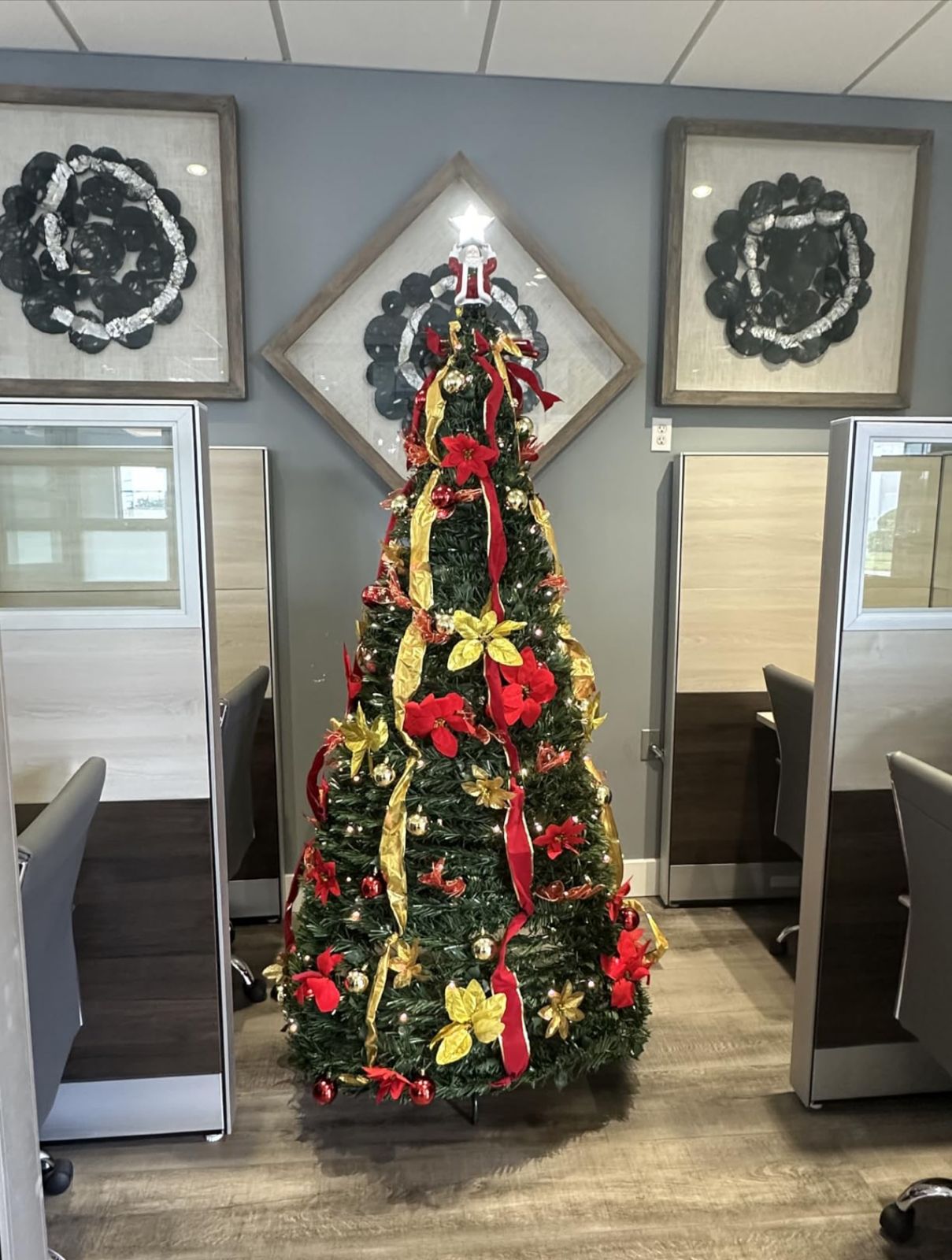 Perfecto para mi oficina que es algo pequeña; pero como es plegable lo armo sin que ocupe mucho espacio al terminar la Navidad. Eso sí lo recomiendo mucho.