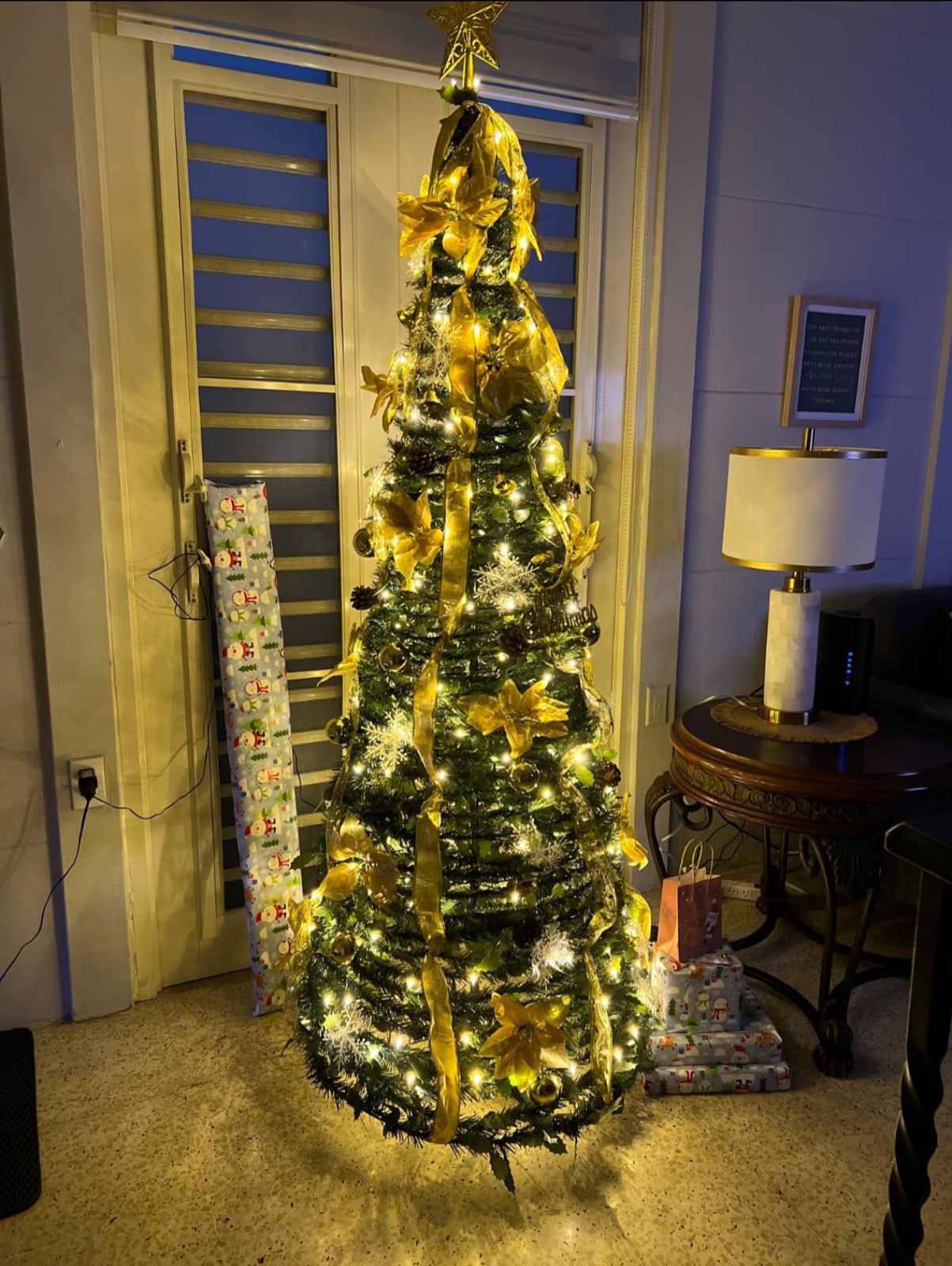Me encantó, me llegó y de una lo saqué, no tuve que destinar una tarde completa a decorarlo desde cero. Solo le puse algunos adornos propios y quedó muy bonito. Lo mejor de todo es que venía con luces.