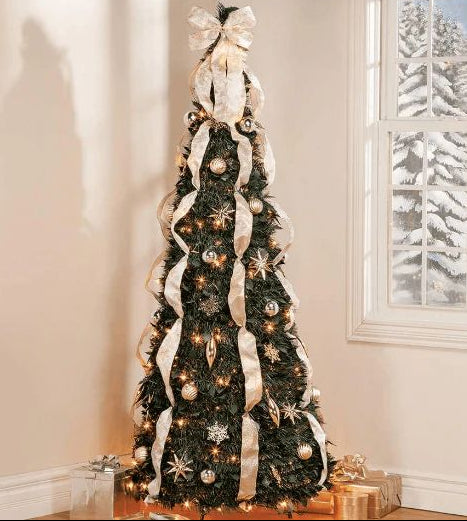 Estaba buscando algo que no ocupara mucho espacio ni me implicara un día entero de montaje, y este árbol plegable me pareció perfecto, es hermoso y muy elegante.